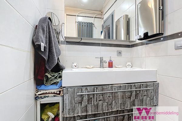La salle de bains est équipée d'un WC, d'une douche moderne et d'un lavabo. La maison dispose également d'une cave sèche, idéale comme espace de rangement supplémentaire.