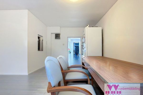 Aangename leefruimte en eetplaats met lichtinval.